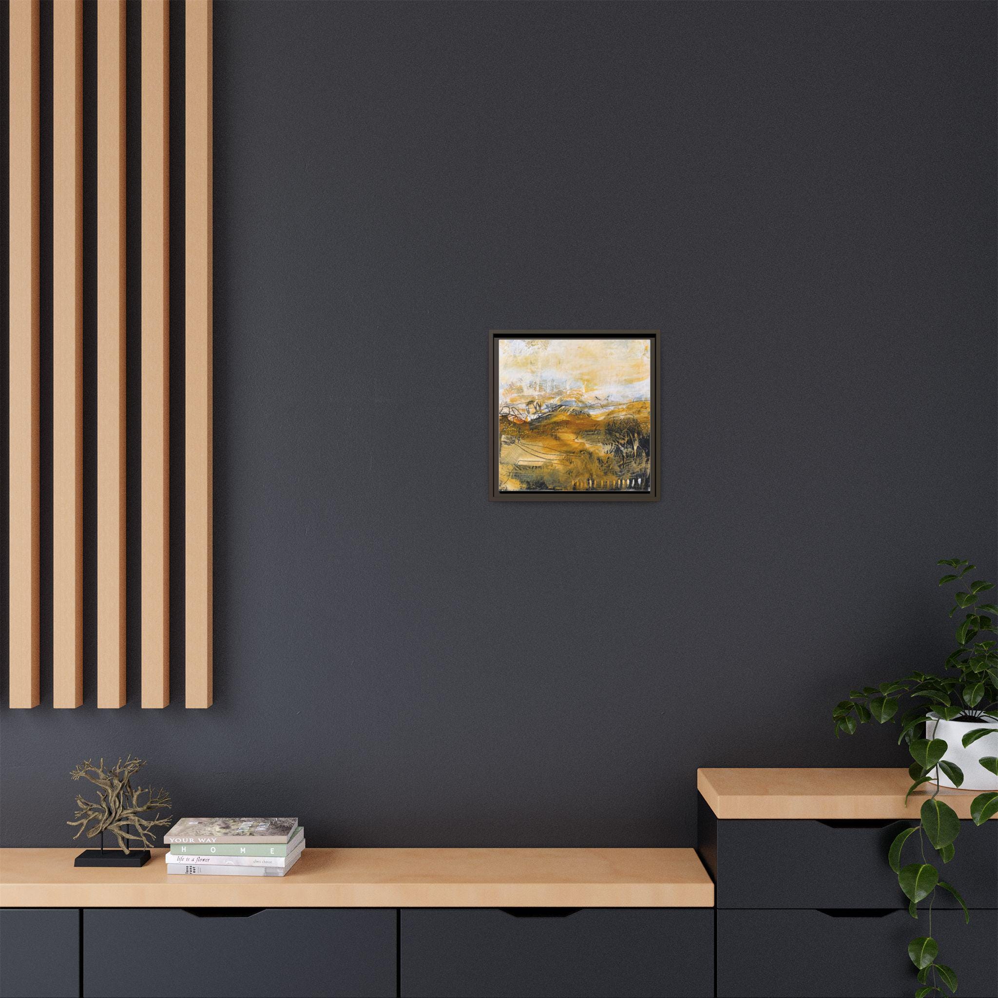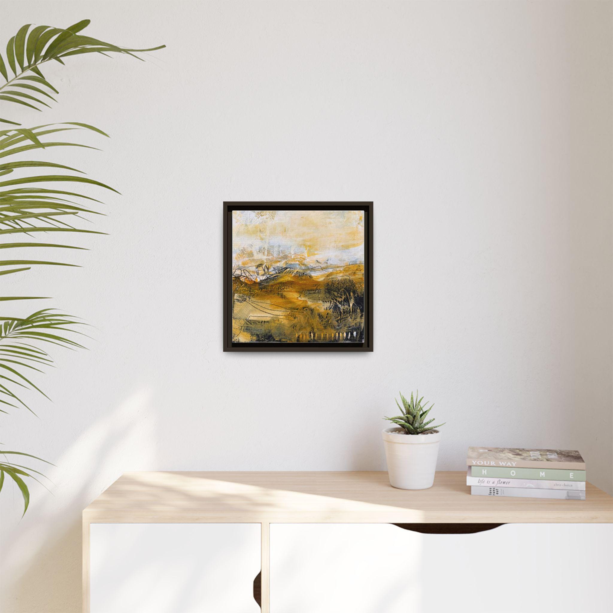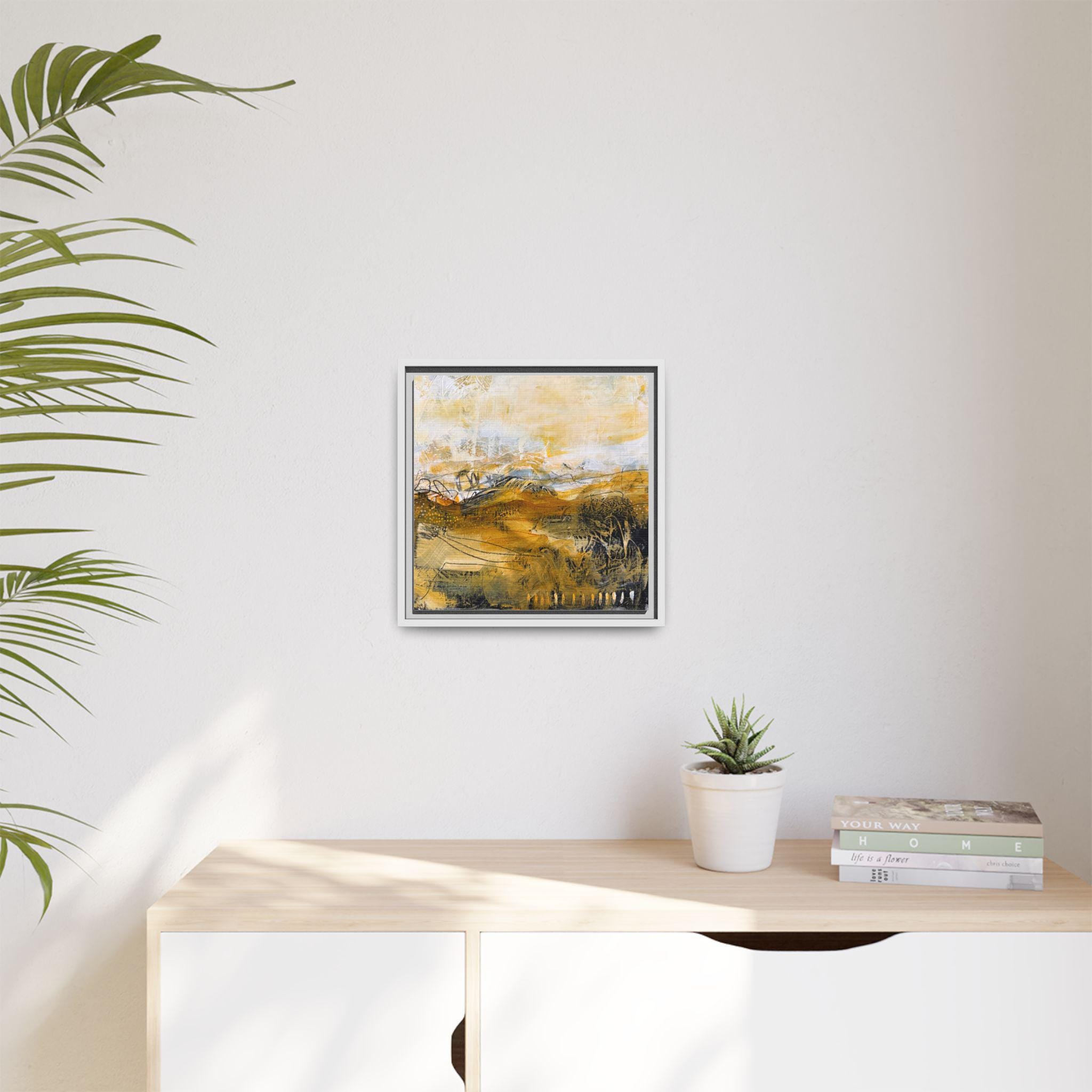Warm, textured brushstrokes pull you into a sunlit landscape where ochres and soft neutrals mingle like late-afternoon fields. This matte canvas, framed in a slim pine profile, brings an artful calm to entryways, living rooms, or cozy reading nooks. The subtle texture of the coated canvas and the crisp, UV-resistant inks keep colors luminous without glare. Hang it solo for a meditative focal point, or pair it with other earthy pieces to build a layered, collected look that feels lived-in and personal.