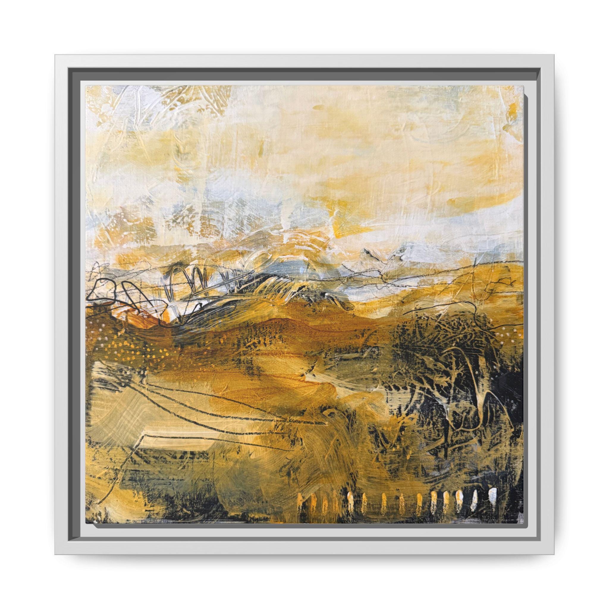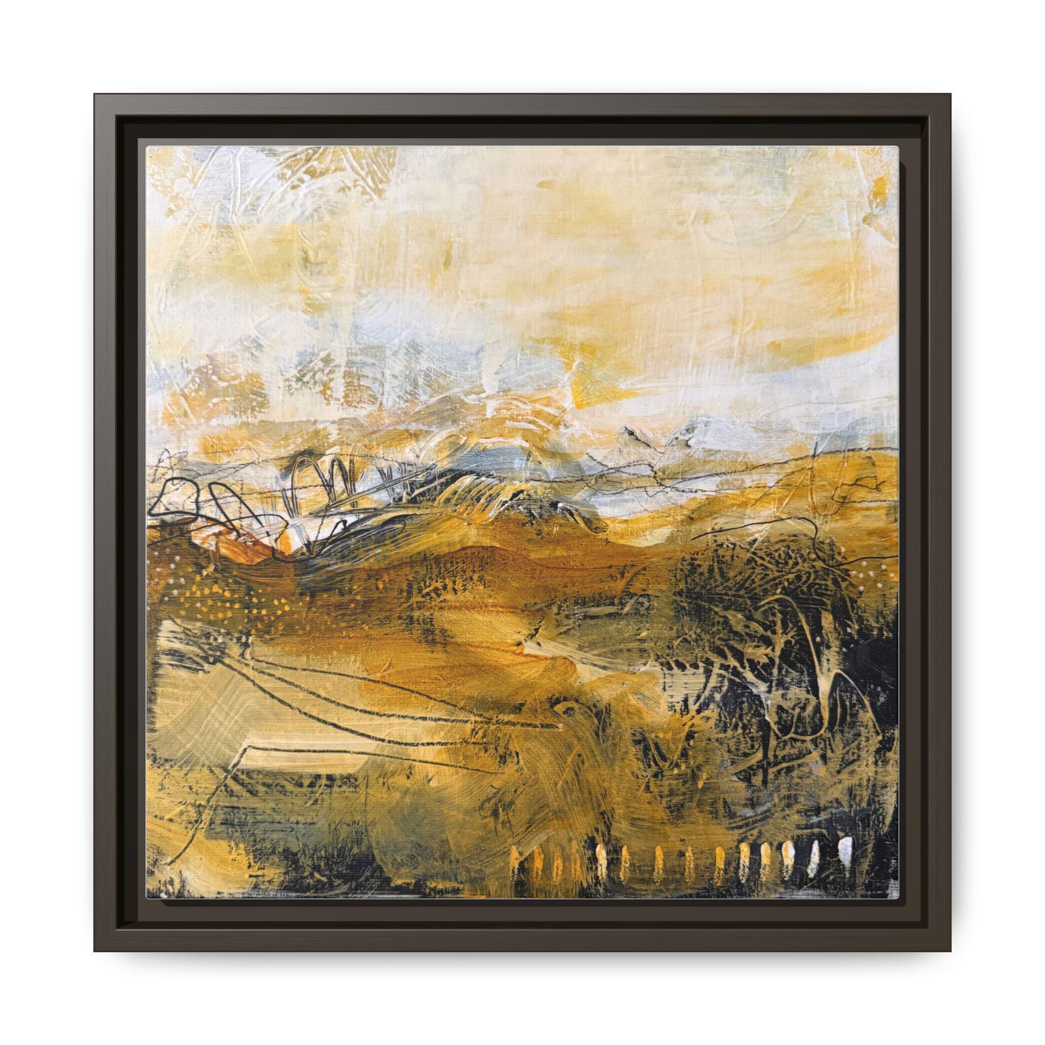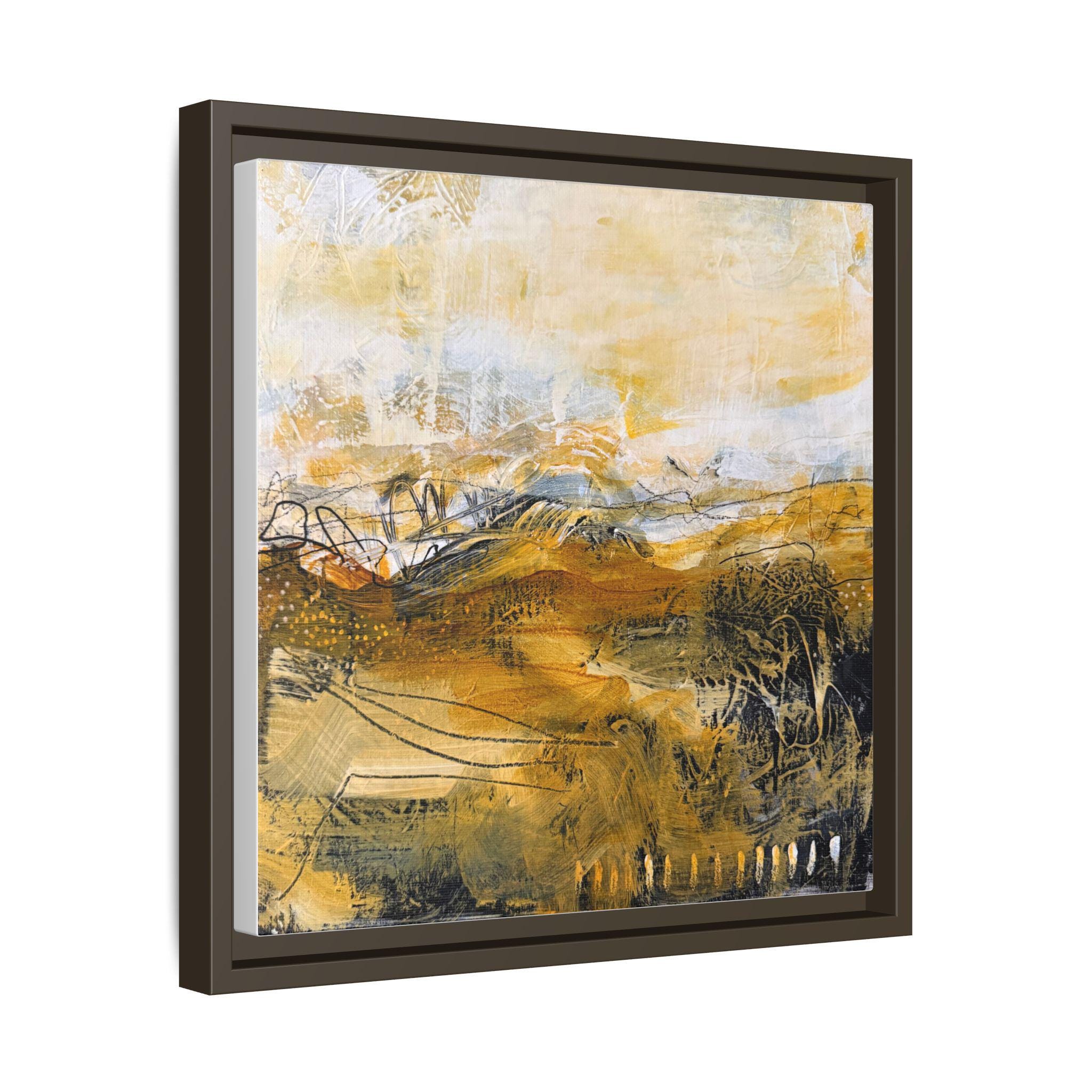 Warm, textured brushstrokes pull you into a sunlit landscape where ochres and soft neutrals mingle like late-afternoon fields. This matte canvas, framed in a slim pine profile, brings an artful calm to entryways, living rooms, or cozy reading nooks. The subtle texture of the coated canvas and the crisp, UV-resistant inks keep colors luminous without glare. Hang it solo for a meditative focal point, or pair it with other earthy pieces to build a layered, collected look that feels lived-in and personal.